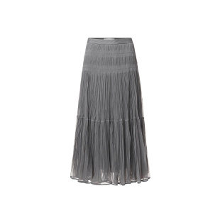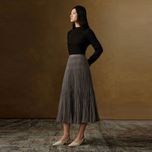 VGRASS维格娜丝秋季 层次褶裥网纱半裙肌理感仙女裙半身长裙女 新款