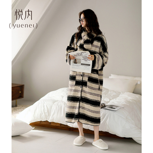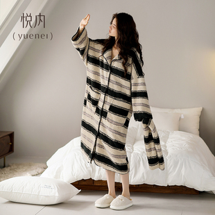 休闲大码 珊瑚绒加厚加绒半边绒长款 冬款 悦内睡衣女睡袍睡裙秋冬季