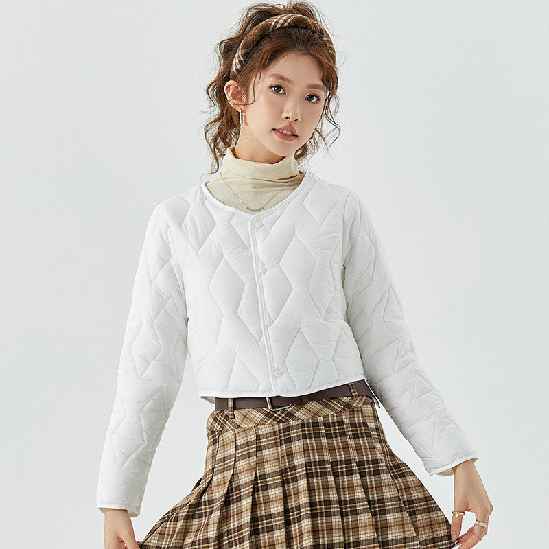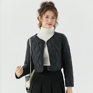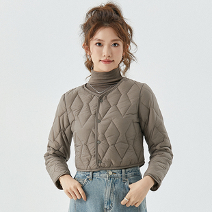 复古菱形格夹棉外套200斤 女装 胖mm冬季 巴恩翻领棉服木子理想大码