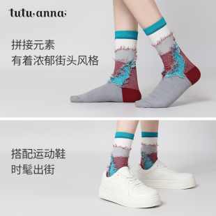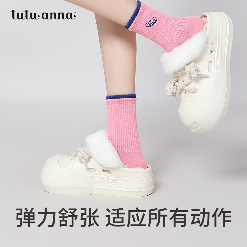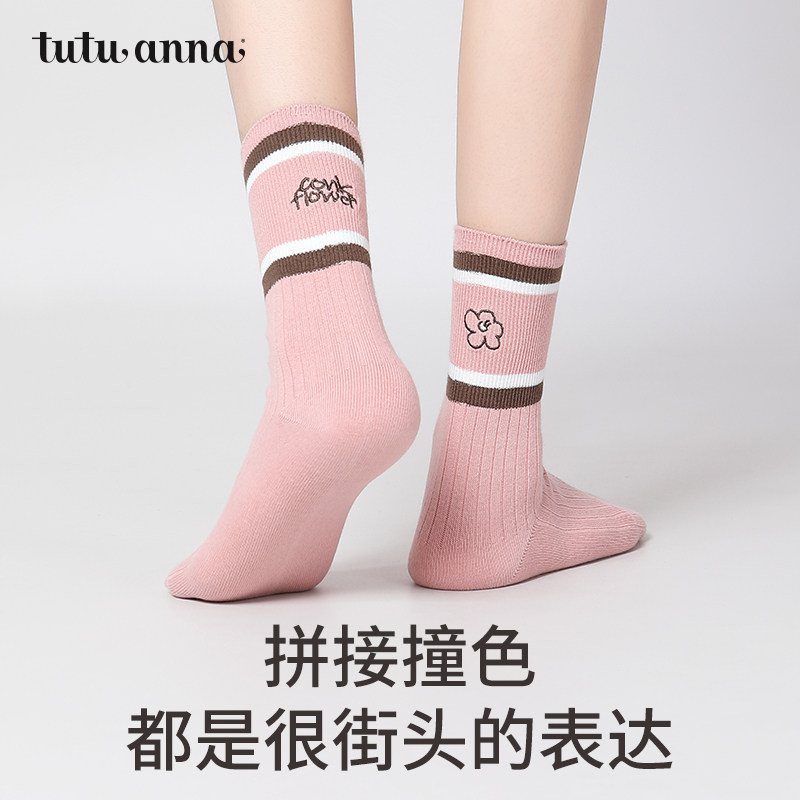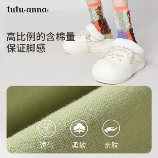 tutuanna春秋女士短袜 棉袜透气街头运动风刺绣提花简约百搭短袜