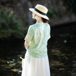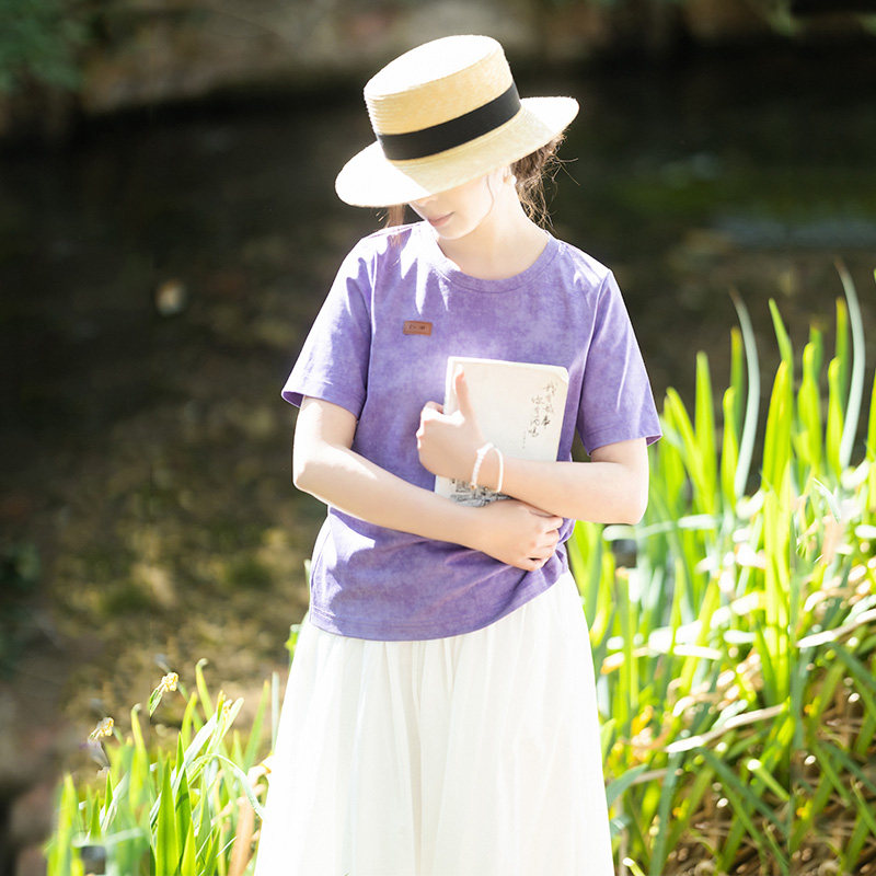 t恤女夏季 短袖 2025百搭显瘦多色晕染针织棉上衣 水波碧斑 特惠
