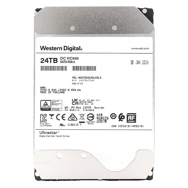 24TB WUH722424ALE6L4 HC580 3.5寸服务器企业级硬盘24tb 西数