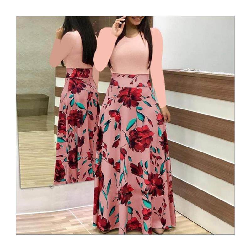 2019秋热卖 19元 欧美风花朵印花拼色连衣裙长裙女装 5XL现货 爆版