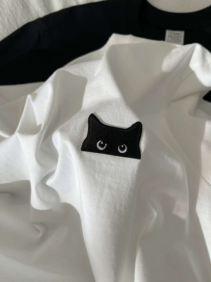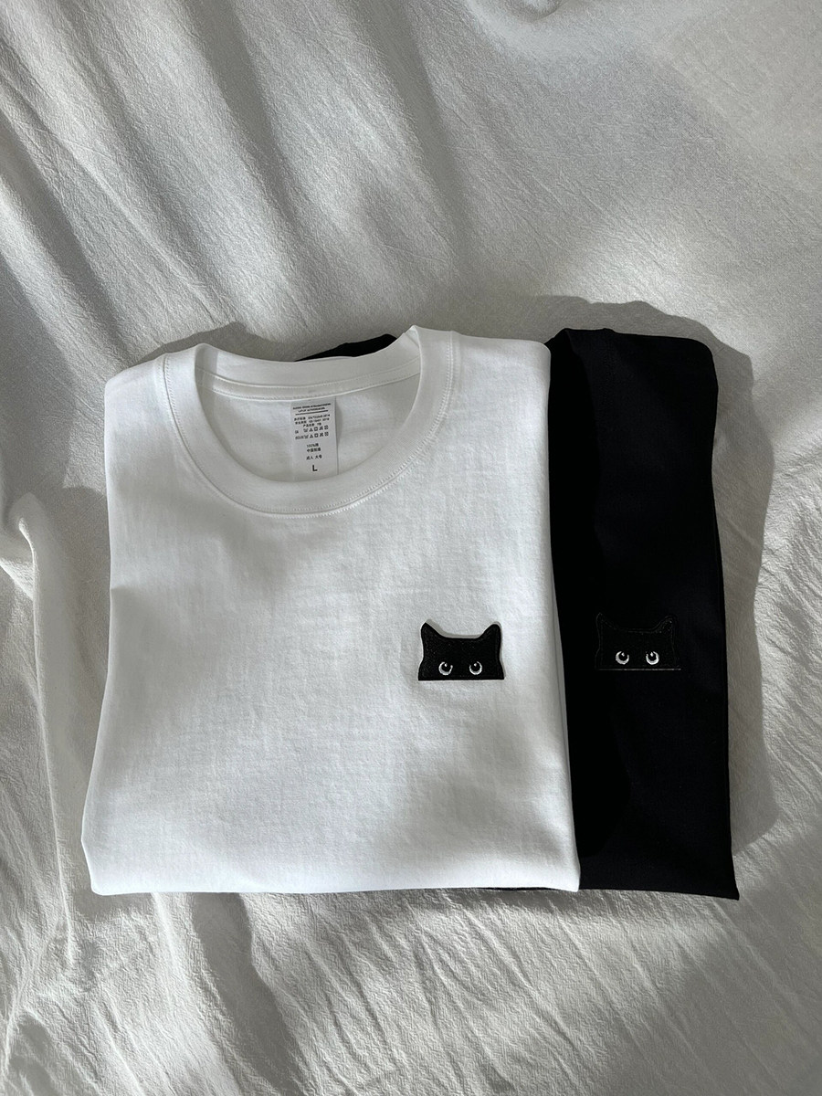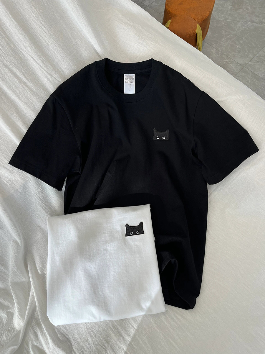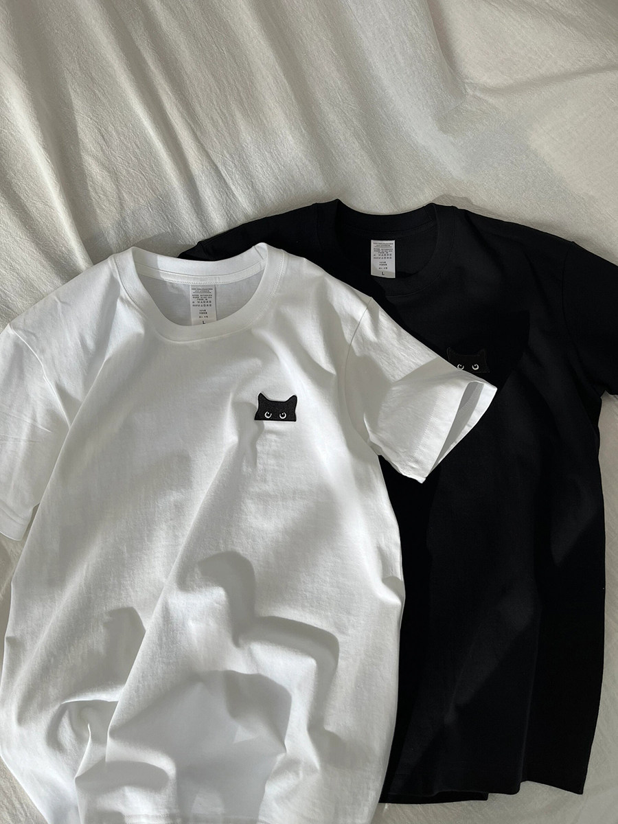 P30控48 T2902 男女同款 230g纯棉情侣中性港风创意刺绣T恤X1818