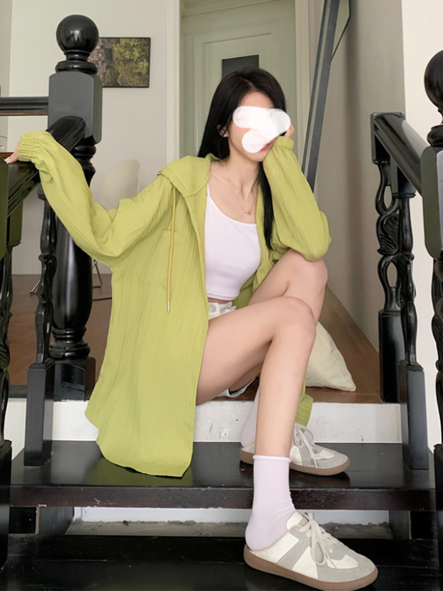 设计感胖MM长袖 薄款 防晒衣夏季 开衫 外套女 宽松百搭连帽中长款 大码