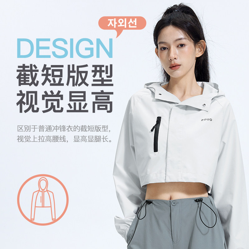 夹克外套 登山防晒连帽上衣女短款 韩国zauo户外冲锋衣短款 休闲版