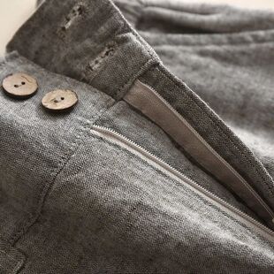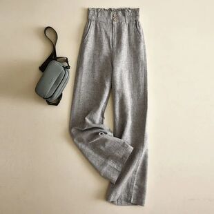 花苞腰直筒裤 棉麻女裤 女高腰垂感折扣商场清仓处理夏季 亚麻阔腿裤