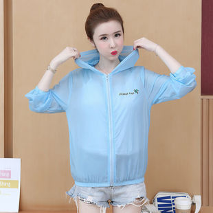 连帽长袖 防晒衣女短款 宽松百搭防紫外线装 韩版 薄外套女潮 2022夏季