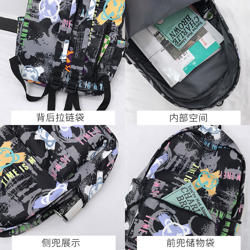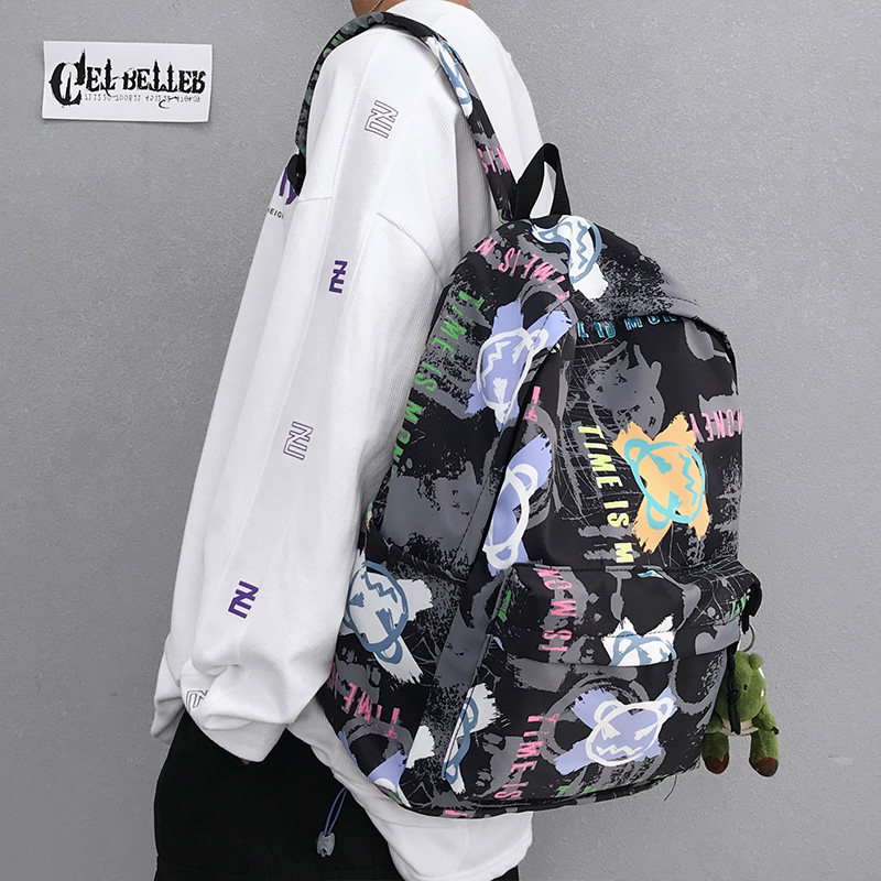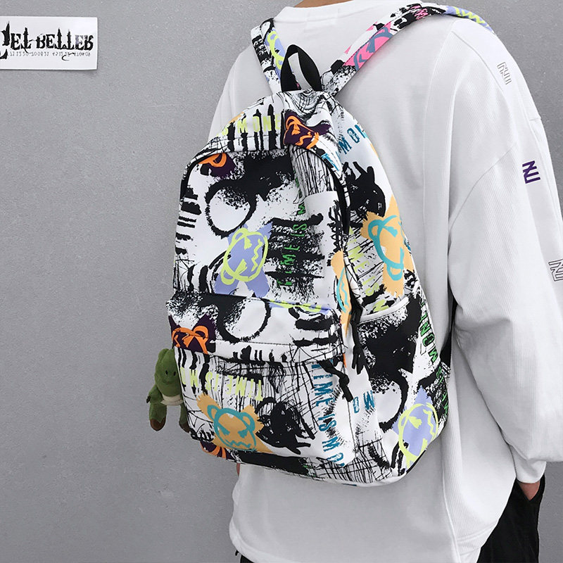 双肩包男士 涂鸦背包男日系高中学生书包男大学生休闲 ins潮酷个性