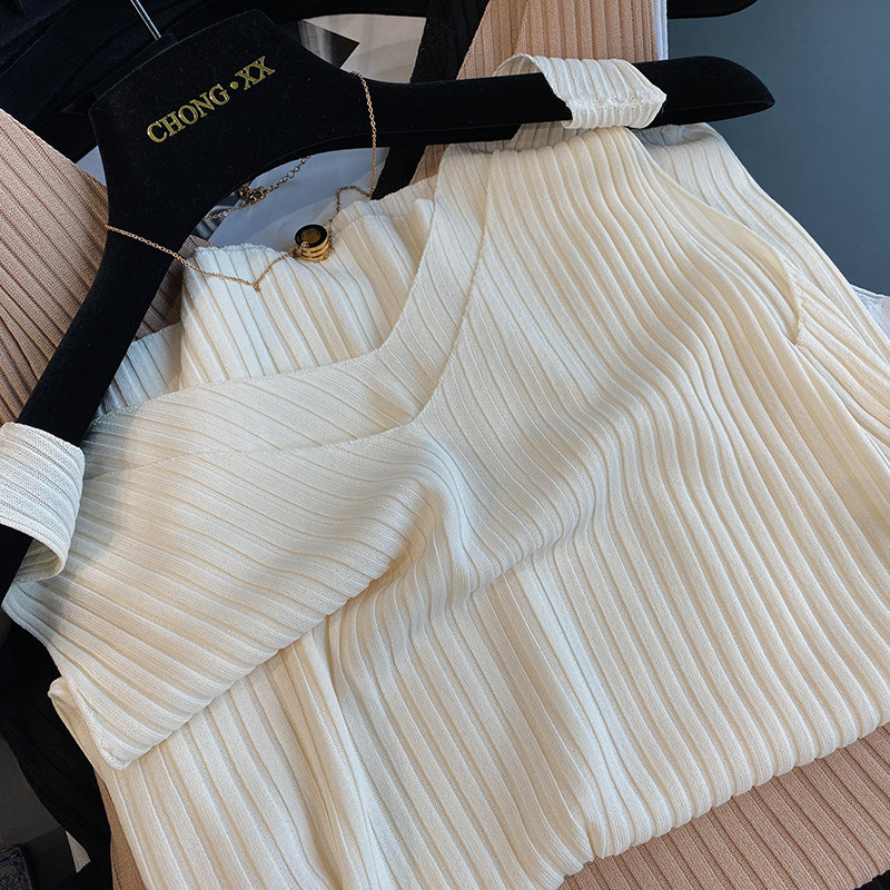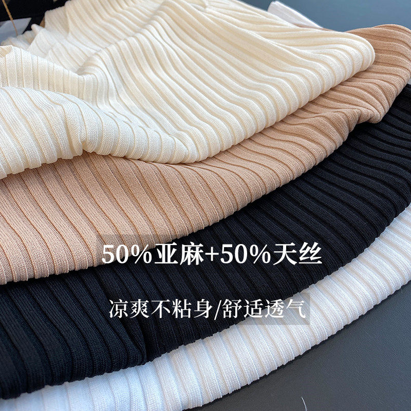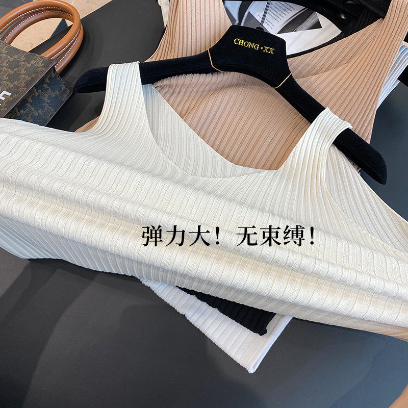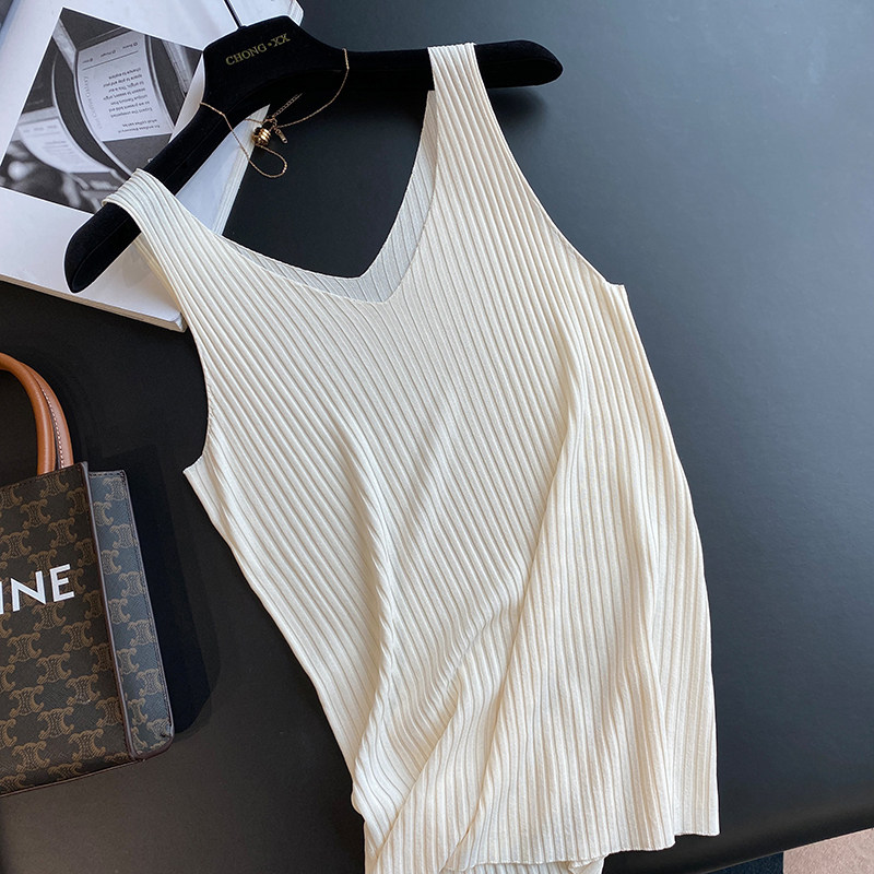 北欧简约百搭显瘦天丝亚麻V领领坑条针织打底衫 背心女22539C 无袖