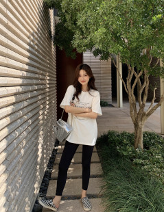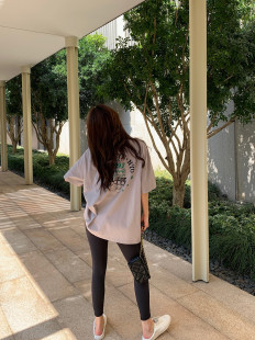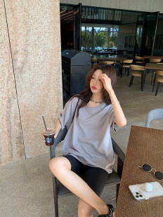 短袖 xm定制 T恤集合卡通印花中长款 伴侣 女宽松休闲上衣 鲨鱼裤