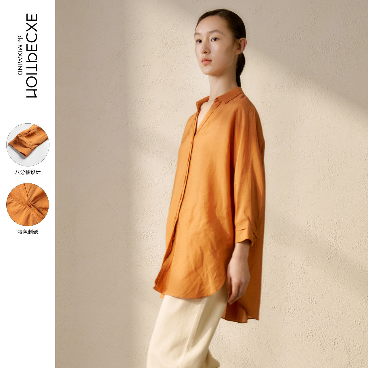 高级感 上衣长袖 EXCEPTION例外女装 春秋休闲别致刺绣宽松衬衫