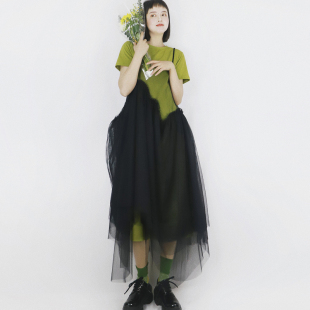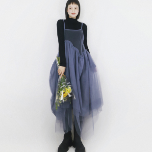 个性 显瘦长裙透视吊带网纱裙连衣裙超仙文艺小众裙不规则罩裙夏新