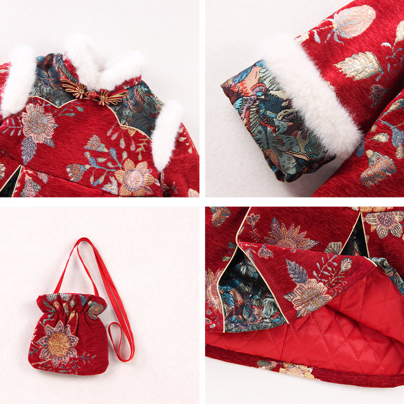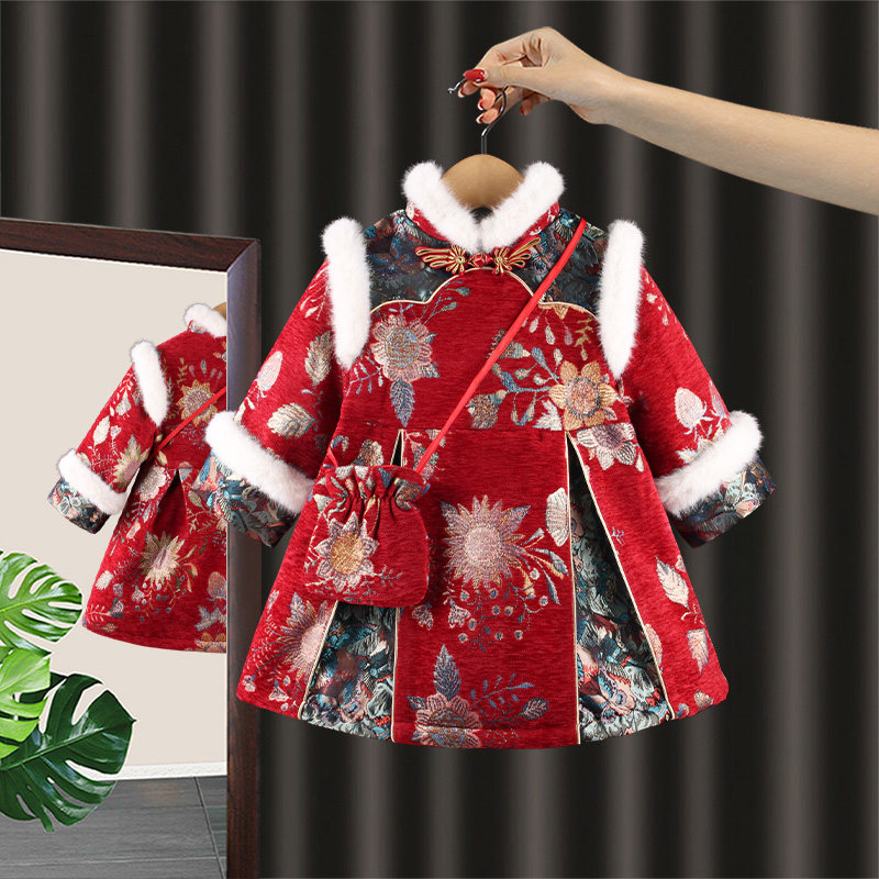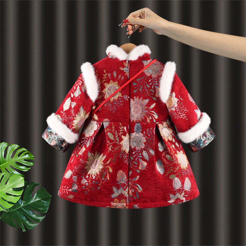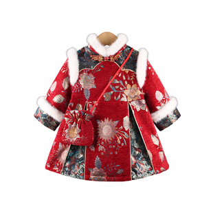 连衣裙收腰显瘦11 新中式 少女长款 加绒加厚年轻款 奥黛旗袍冬季