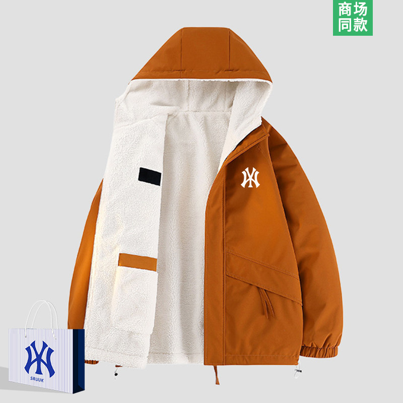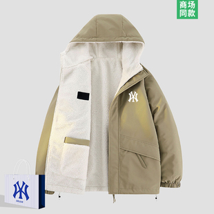 新款 秋冬季 双面穿羊羔绒外套男士 潮牌连帽夹克上衣男 一折专区
