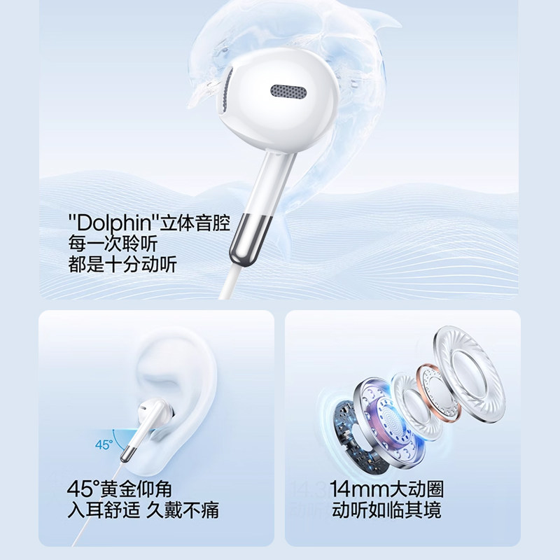 16promax高音质 typec适用iPhone苹果15 官方正品 有线耳机半入耳式
