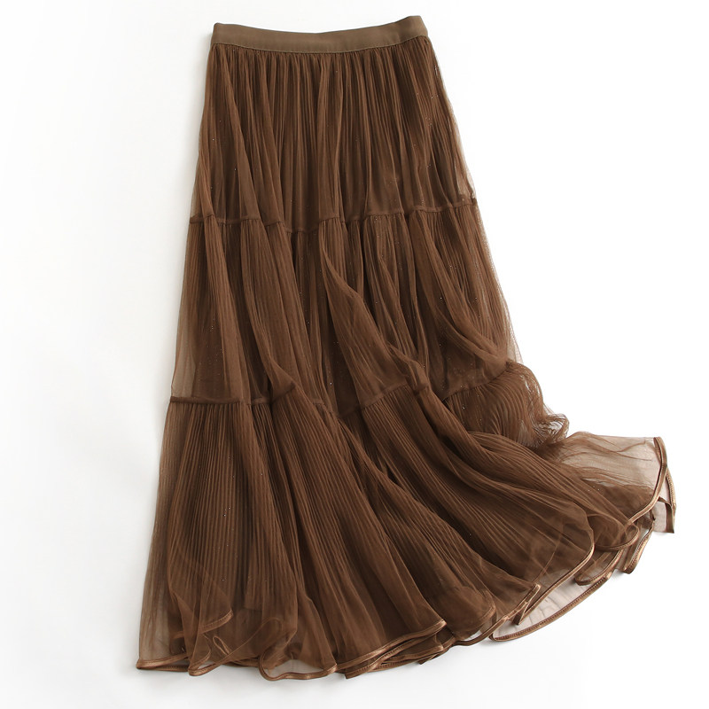 纯色网纱仙女裙松紧腰显瘦大摆裙2024秋新款 超仙半身裙女G393 时尚