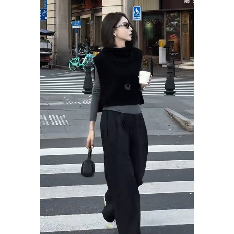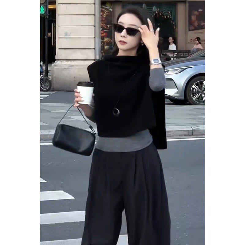 马甲宽松三件套 女百搭显瘦气质打底衫 复古法式 极简高级春秋套装
