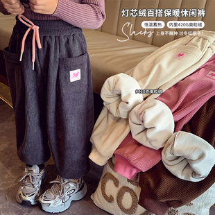保暖直筒裤 加绒加厚雪尼尔阔腿裤 宽松妈妈大码 新款 子 女2025秋冬季