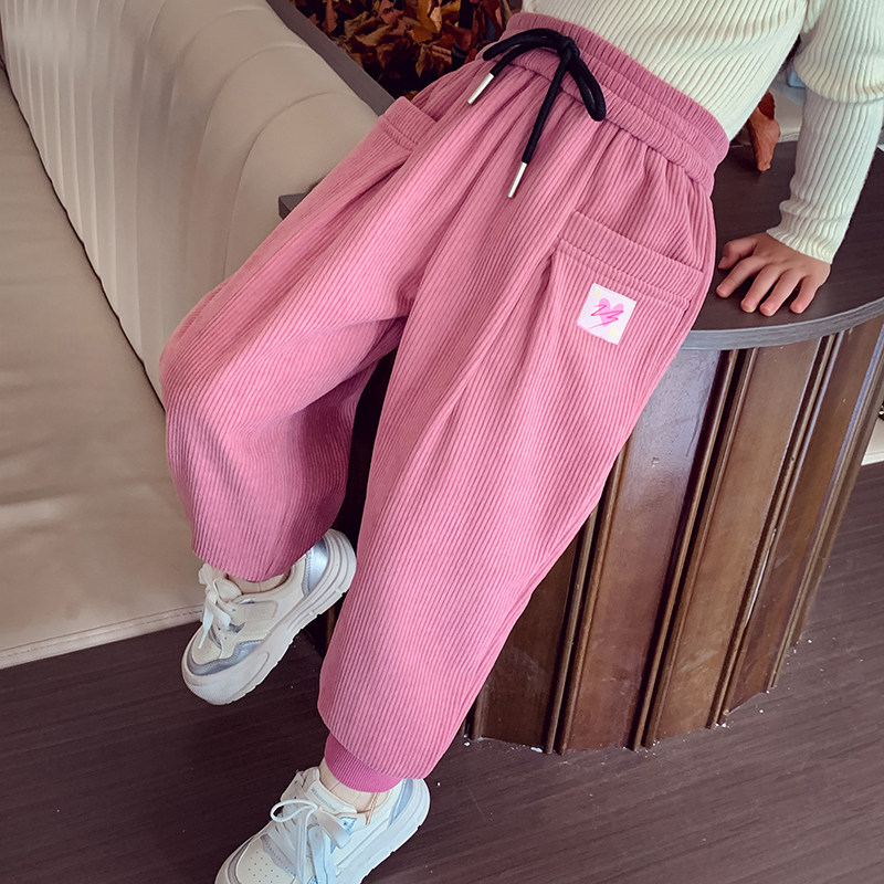 子女装 猫咪加绒加厚休闲卫裤 秋冬季 新款 大码 亚文化阔腿运动裤 美式