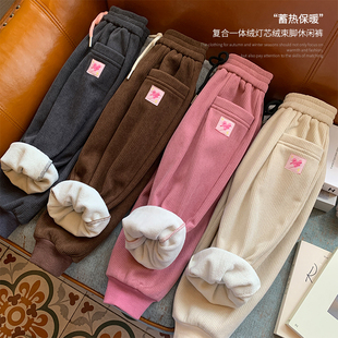 加厚保暖休闲卫裤 女装 直筒显瘦长裤 秋冬款 子 女士一体绒阔腿裤
