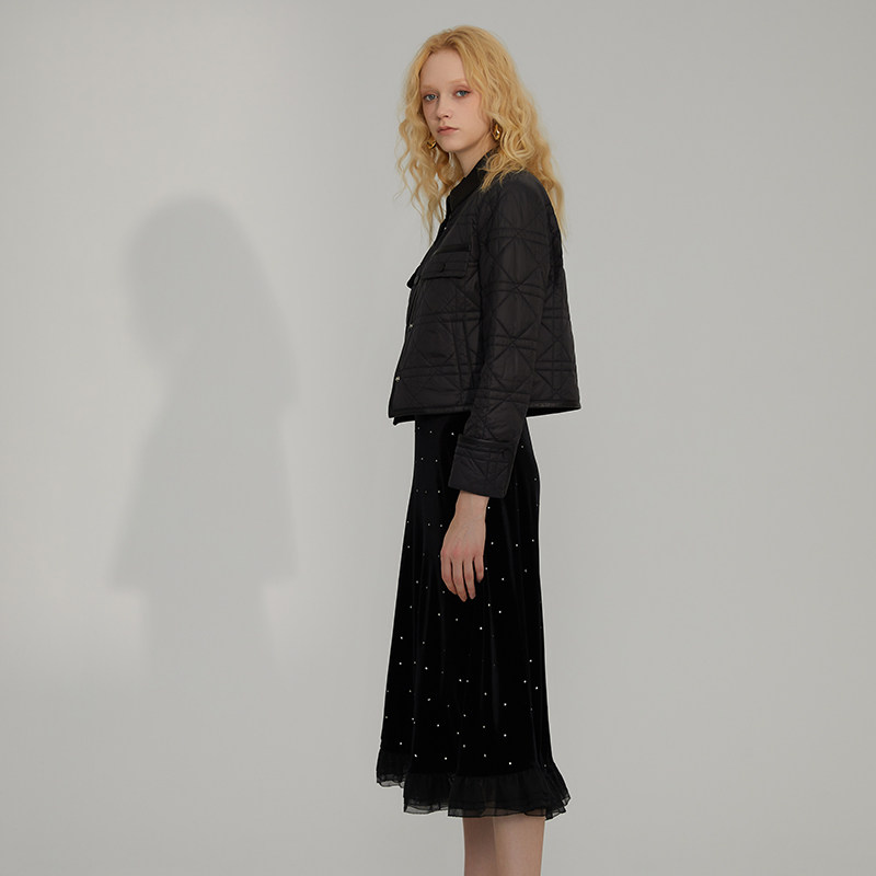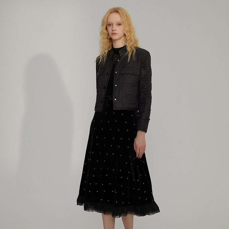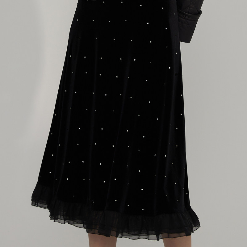新款 MYMO高端气质鱼尾裙朗黛秋季 烫钻丝绒半裙622M 商场同款