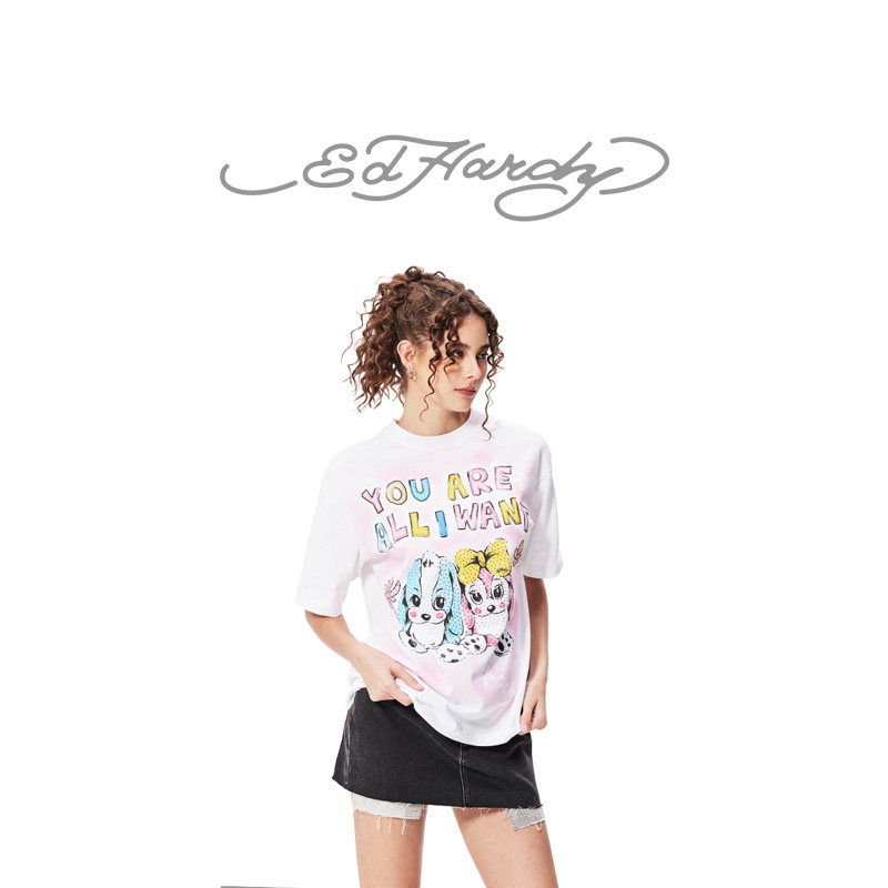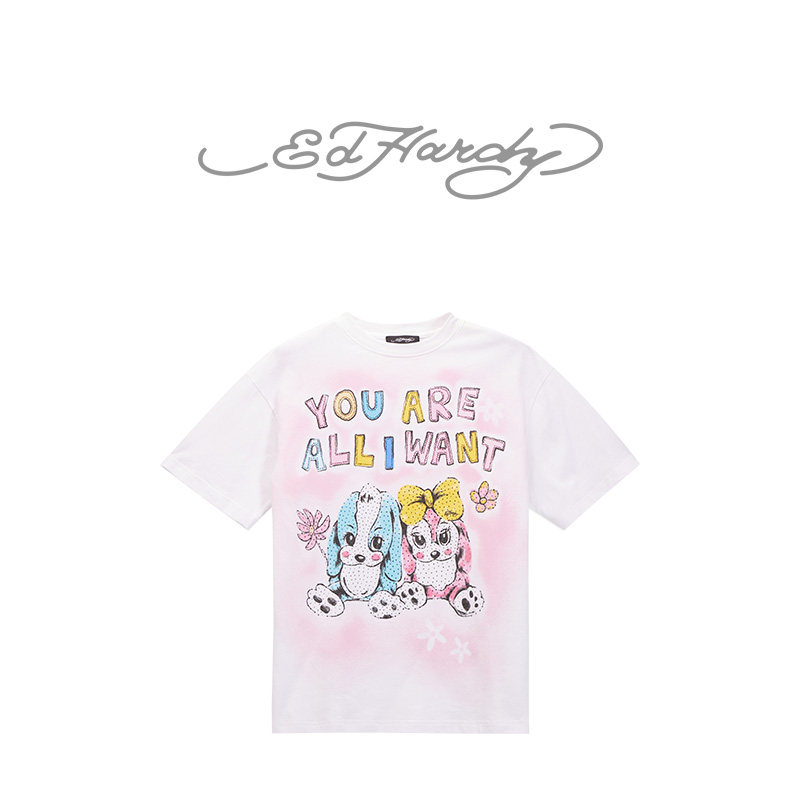 女士卡通小狗烫钻宽松休闲短袖 新款 T恤 Hardy埃德哈迪冬季