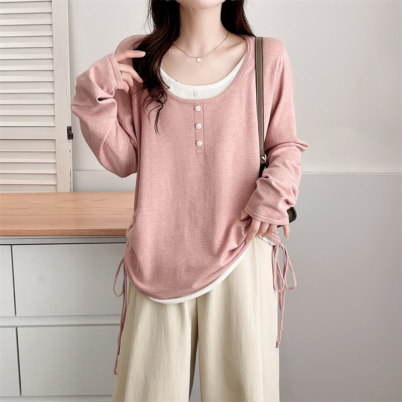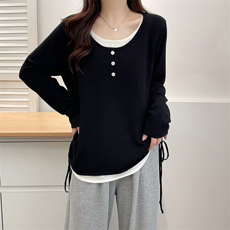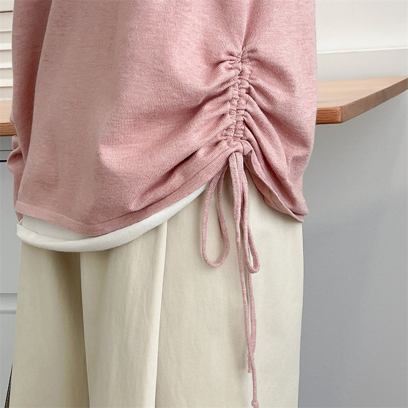 大码 2024春秋韩版 打底针织衫 时尚 胖mm设计感圆领双侧抽绳毛衣 新款