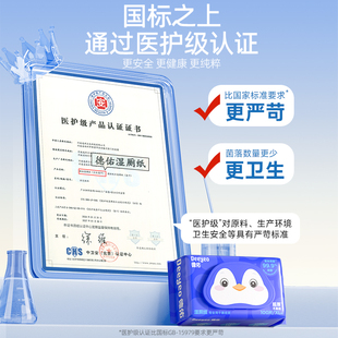 Deeyeo德佑蓝色企鹅湿厕纸80抽3大包箱装