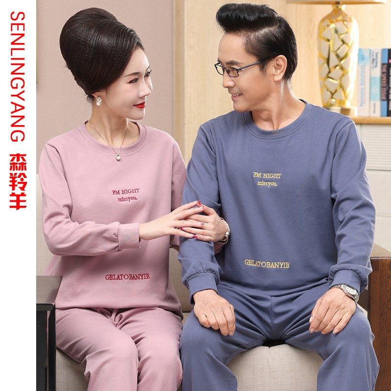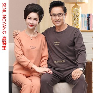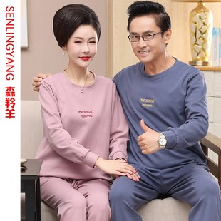 套装 爸爸妈妈情侣睡衣女士春秋款 休闲套头家居服男款 纯棉长袖 秋季