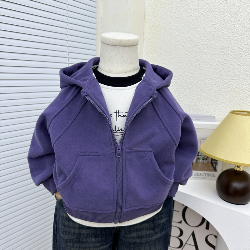 秋冬加绒帽衫 儿童春秋装 洋气卫衣开衫 男童韩版 潮 连帽外套2025新款