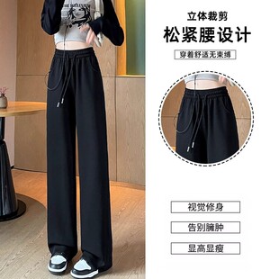 运动香蕉休闲卫裤 加绒高腰垂感小个子宽松直筒窄版 女秋冬季 阔腿裤