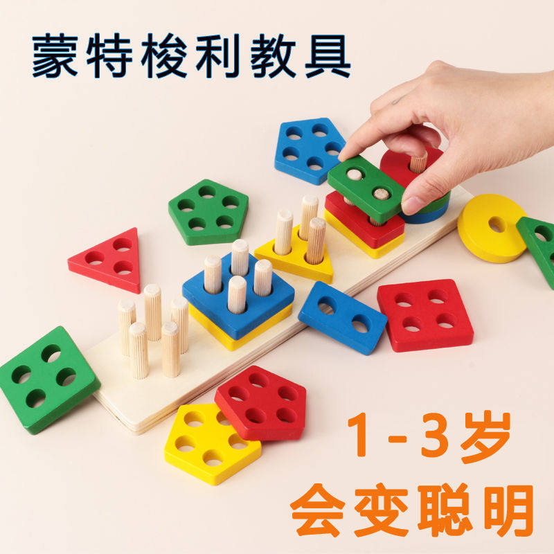 蒙氏几何形状套柱配对积木儿童2 教育叠叠乐玩具 3岁1早教益智拼装