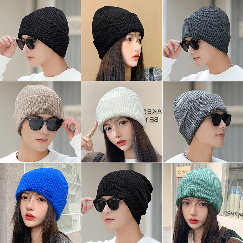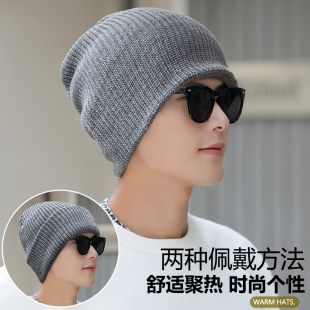 帽子男女冬毛线帽潮韩版 保暖护耳冷帽套头帽纯色百搭显脸小针织帽