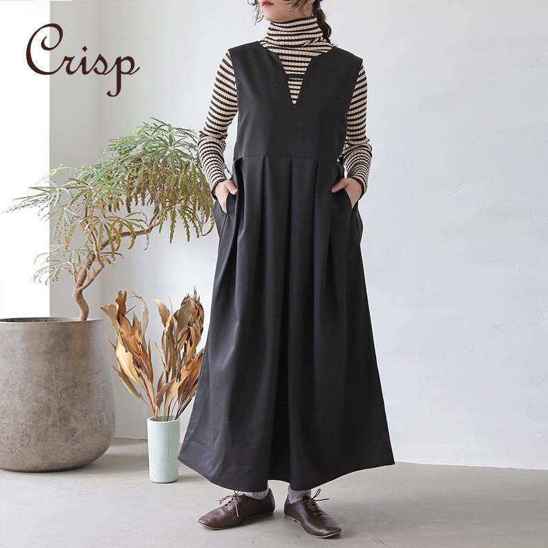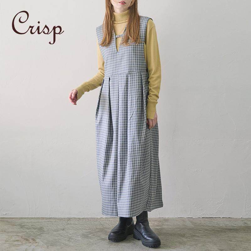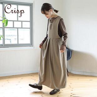 CRISP日系格纹背心长裙女裙装 复古文艺范儿宽松连衣裙2025春款
