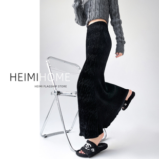 半身裙女2025秋季 高腰a字蓬蓬裙松紧腰百褶裙黑色伞裙大摆裙 新款