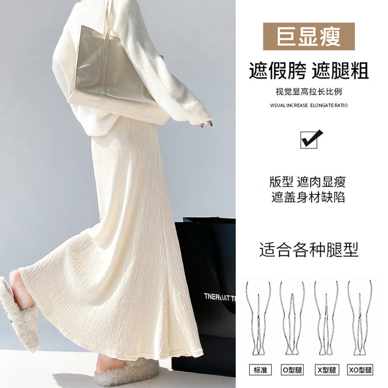 美拉德穿搭高腰棕色a字半身裙女大码 胖mm遮肚藏肉百褶显瘦长裙冬