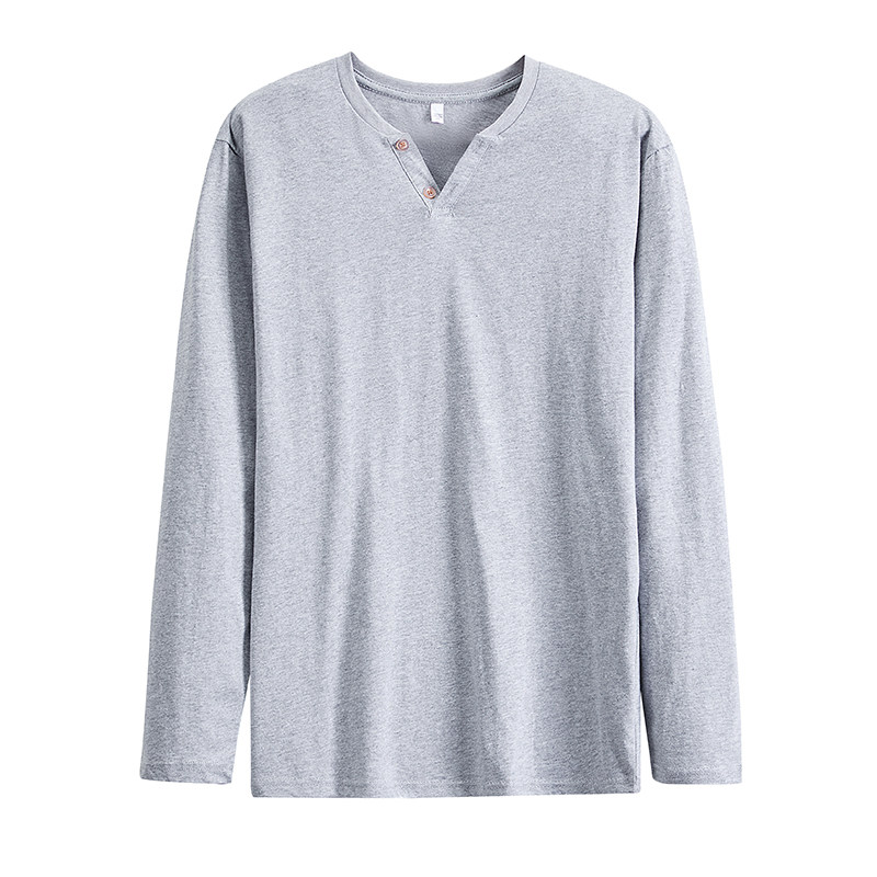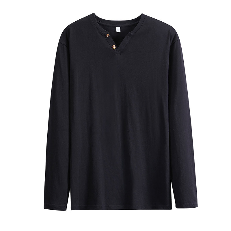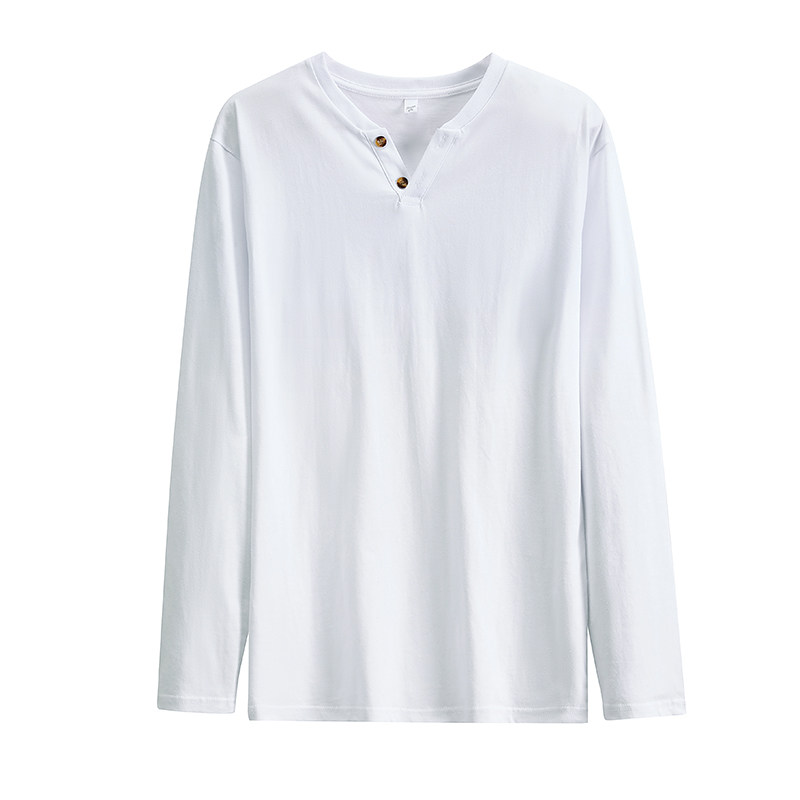 V领扣子男士 纯棉潮流T恤上衣服白体恤打底衫 长袖 修身 韩版 2025新款