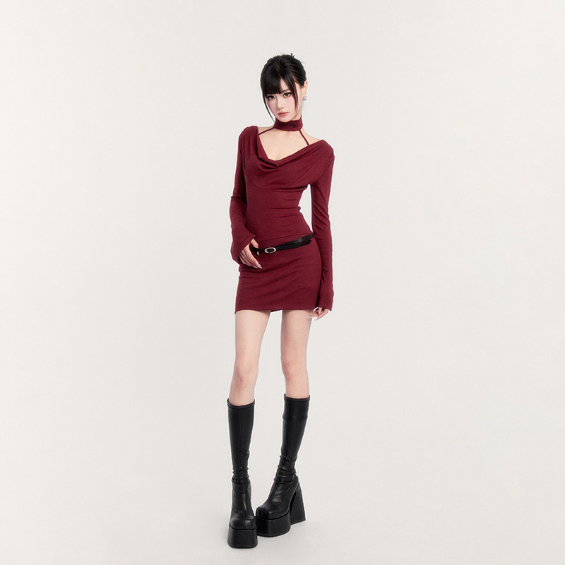 显瘦弹力包臀裙子 性感辣妹新年荡领项圈连衣裙修身 VOCK 暗黑缪斯