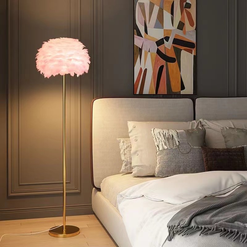 北欧轻奢羽毛落地灯客厅沙发旁卧室床头台灯直播间温馨装 灯 饰立式