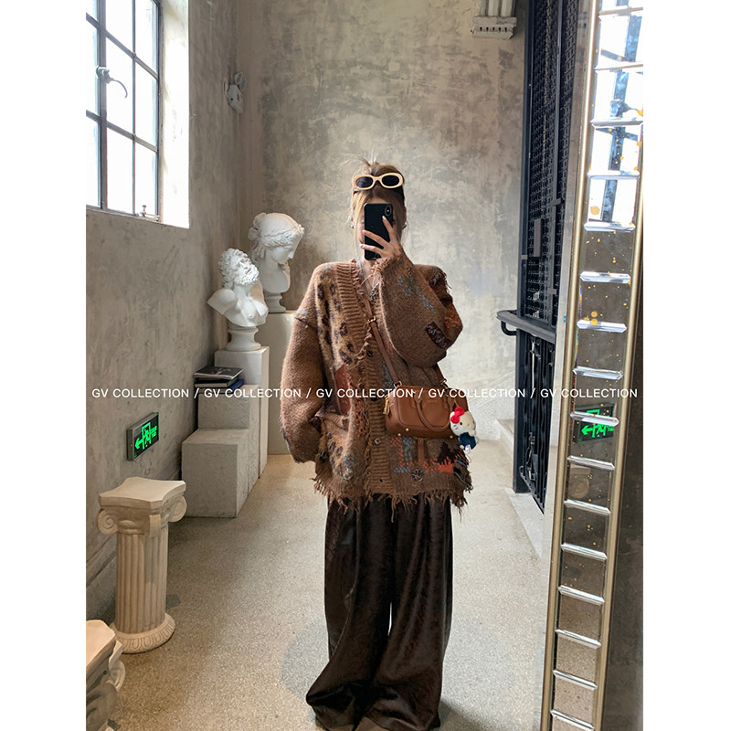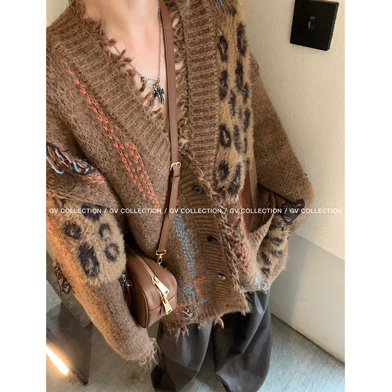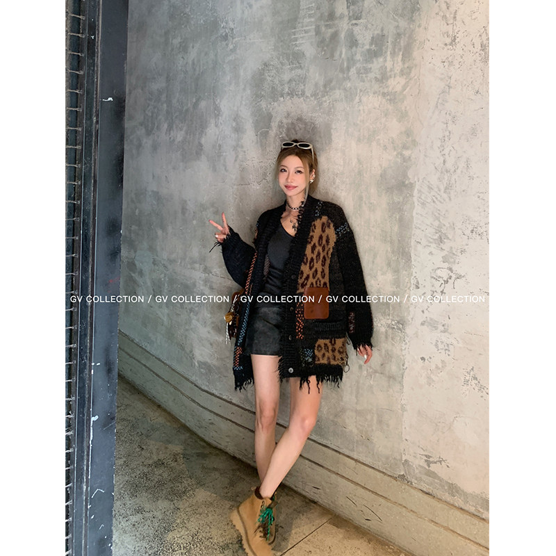 冬季 破碎流苏加厚撞色毛衣宽松开衫 外套女 重工皮标 GV大白哥