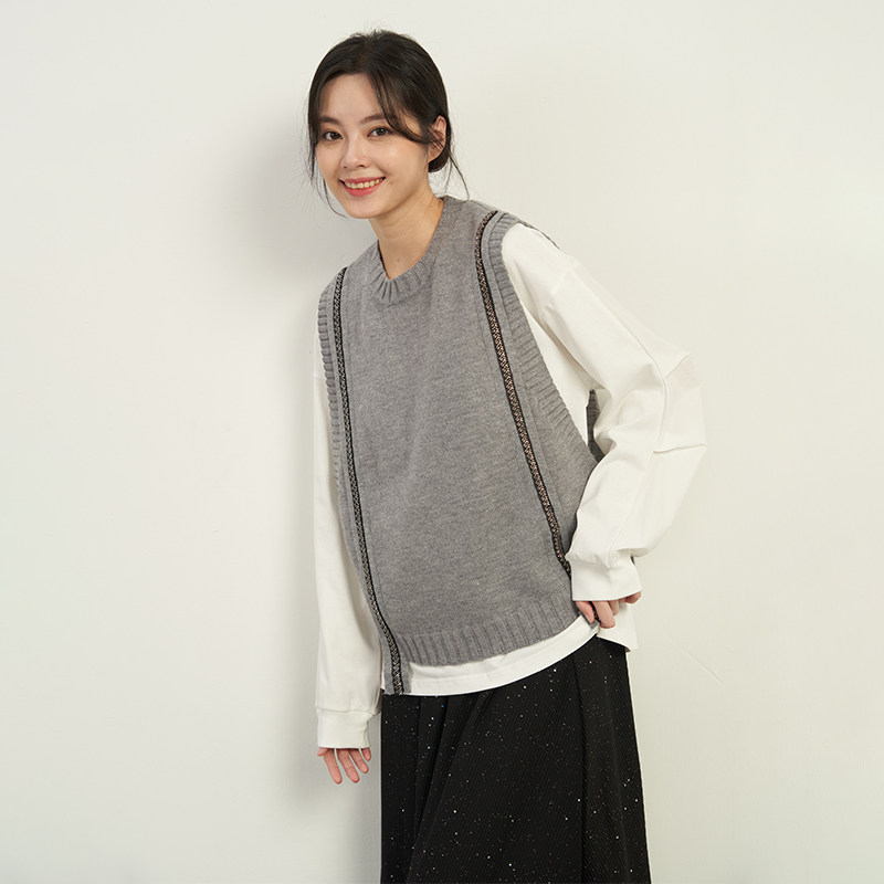 宽松叠穿无袖 韩版 休闲毛织背心马甲女UCEH845 新品 UGIZ2024年秋季