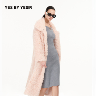 长款 YES 温柔桃桃时尚 YESIR叶谦原创设计冬新款 翻领皮草