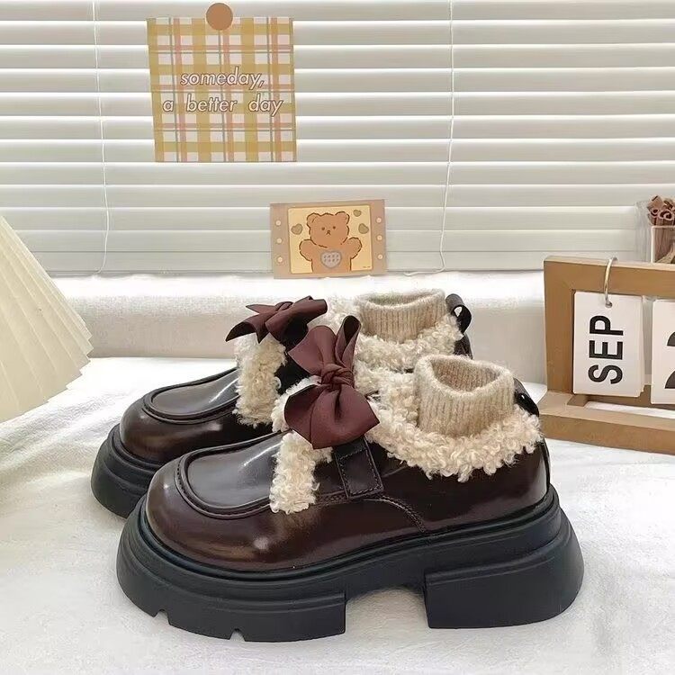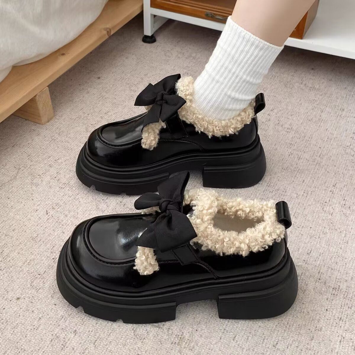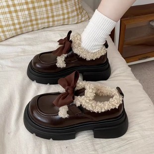 加绒乐福鞋 百搭黑色jk单鞋 ins潮 女2025秋冬新款 厚底英伦风小皮鞋