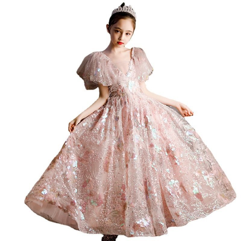 加肥加大绑带礼服公主裙婚纱生日蓬蓬纱花童主持人考级钢琴演出服