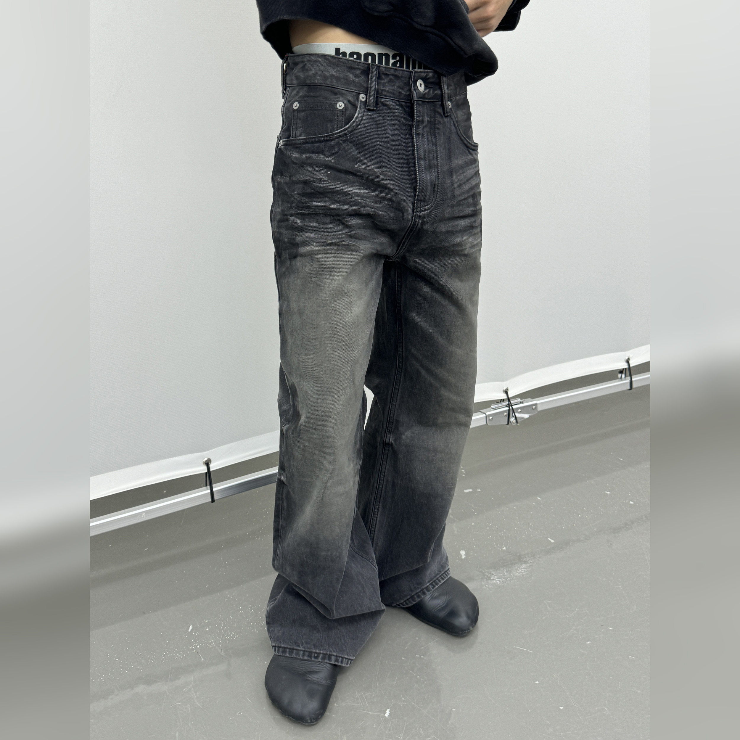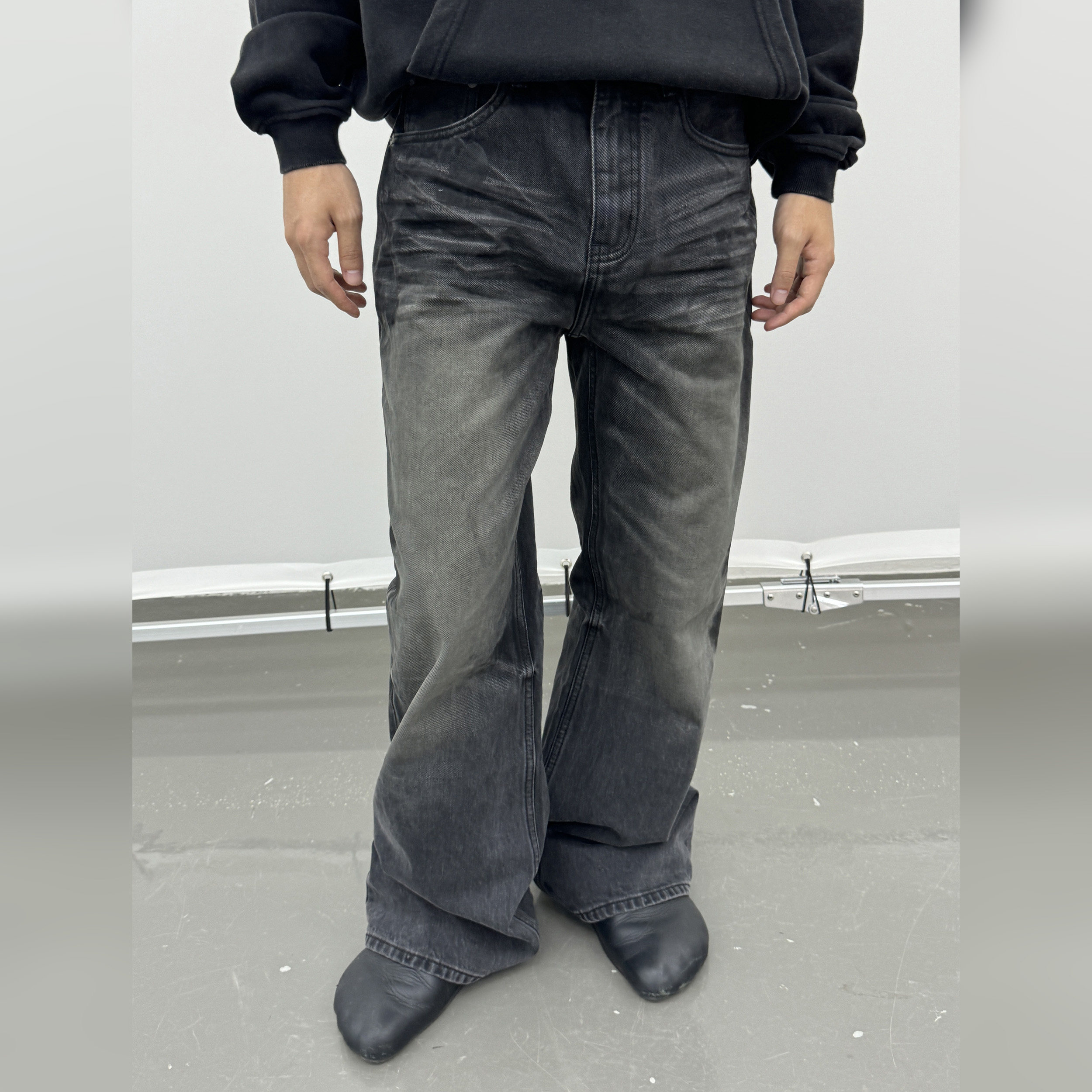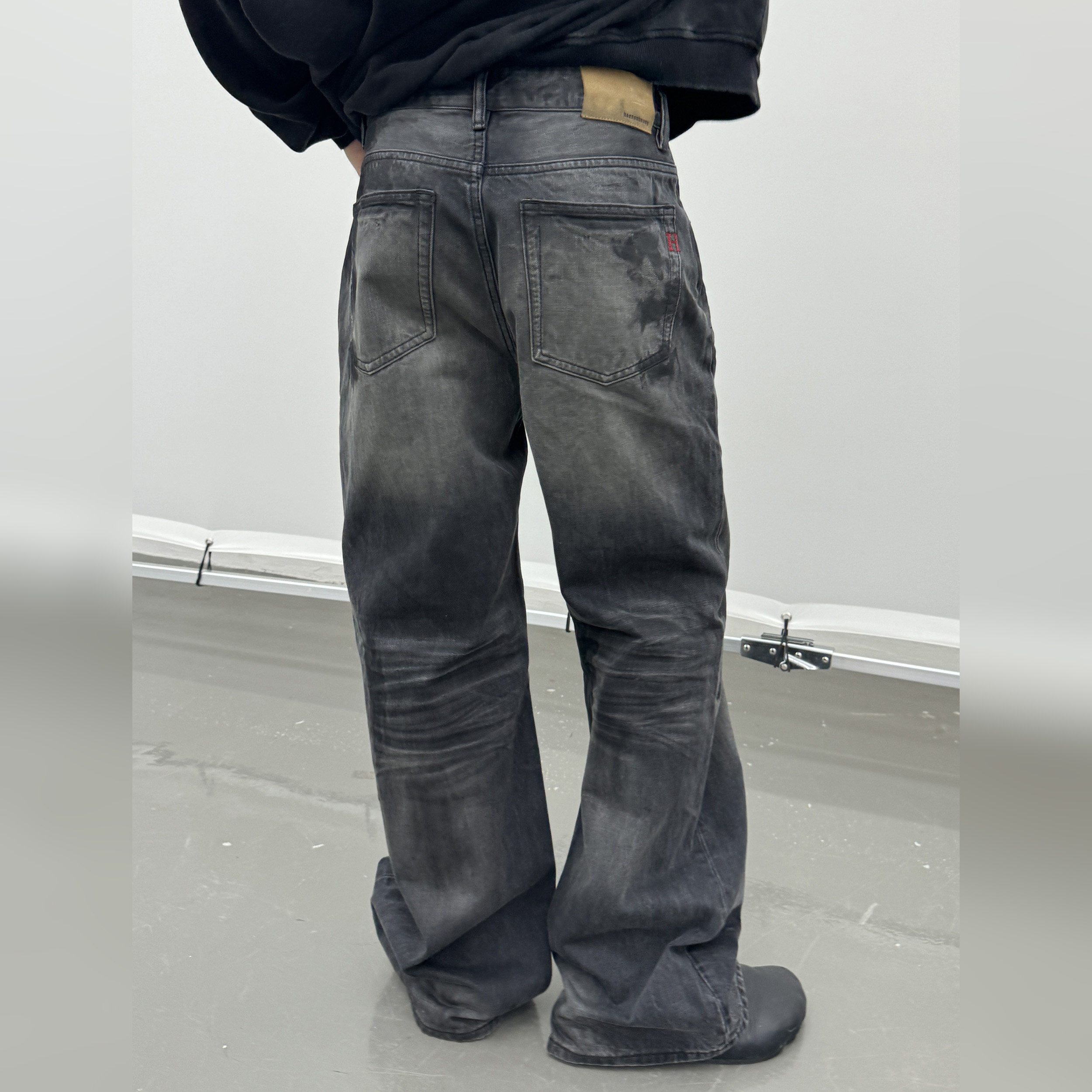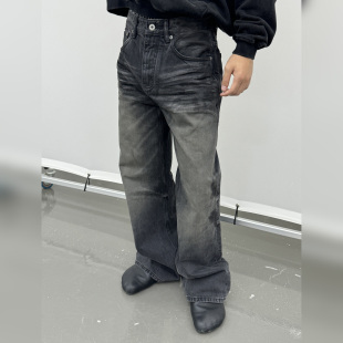haonanhuang 重置2021M复古做旧水洗猫须压褶墨痕纹理牛仔裤