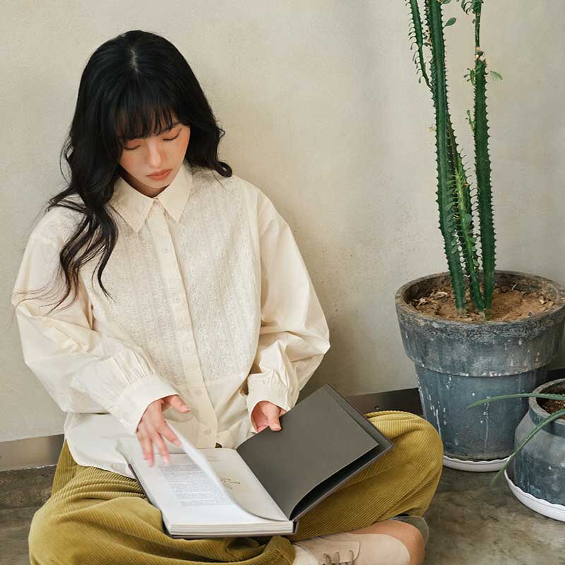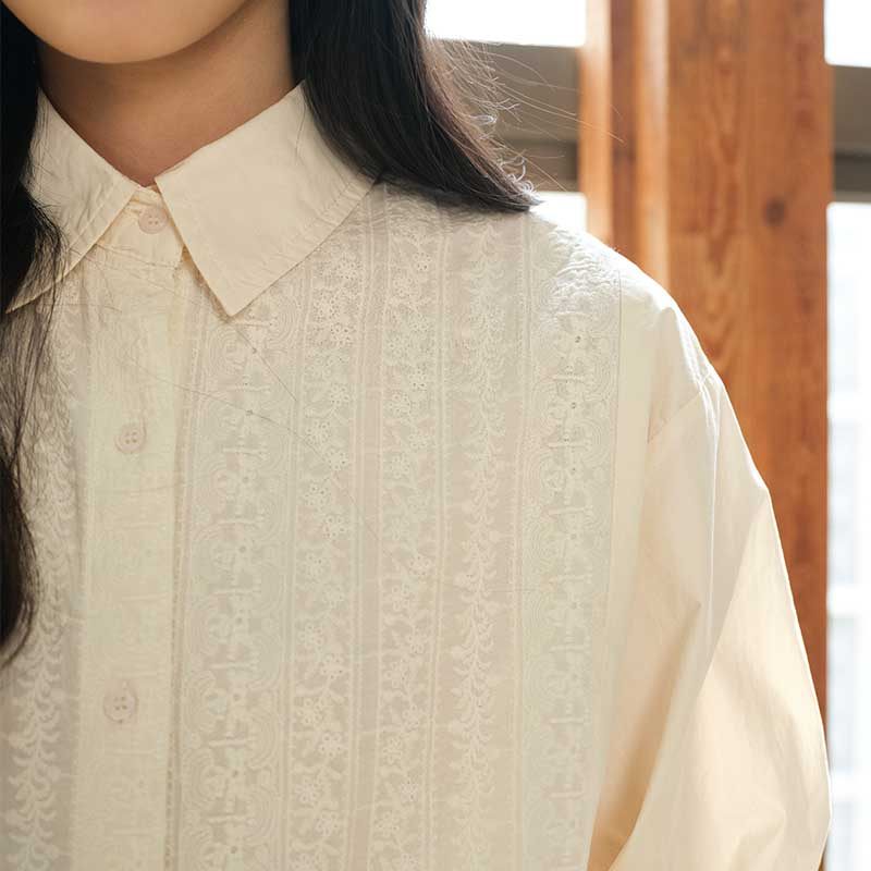 绣花百搭上衣设计感文艺女装 翻领长袖 女春秋新款 非鱼文艺衬衫
