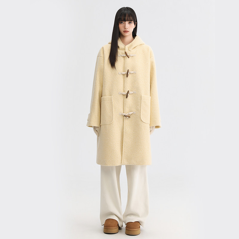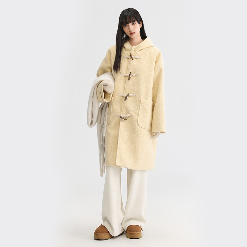 King 毛呢外套女 Prince暖冬多巴胺黄温柔学院风牛角扣大衣中长款