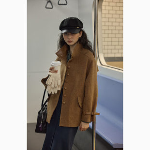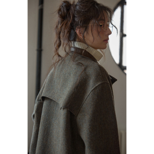 毛呢外套女秋冬新款 全羊毛立领短款 灰色收腰外套 法式 solighter