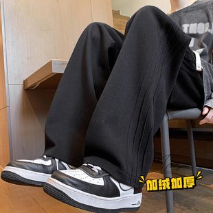 男冬季 新款 黑色裤 子直筒休闲裤 李宁热力裤 加绒针织运动裤 卫裤